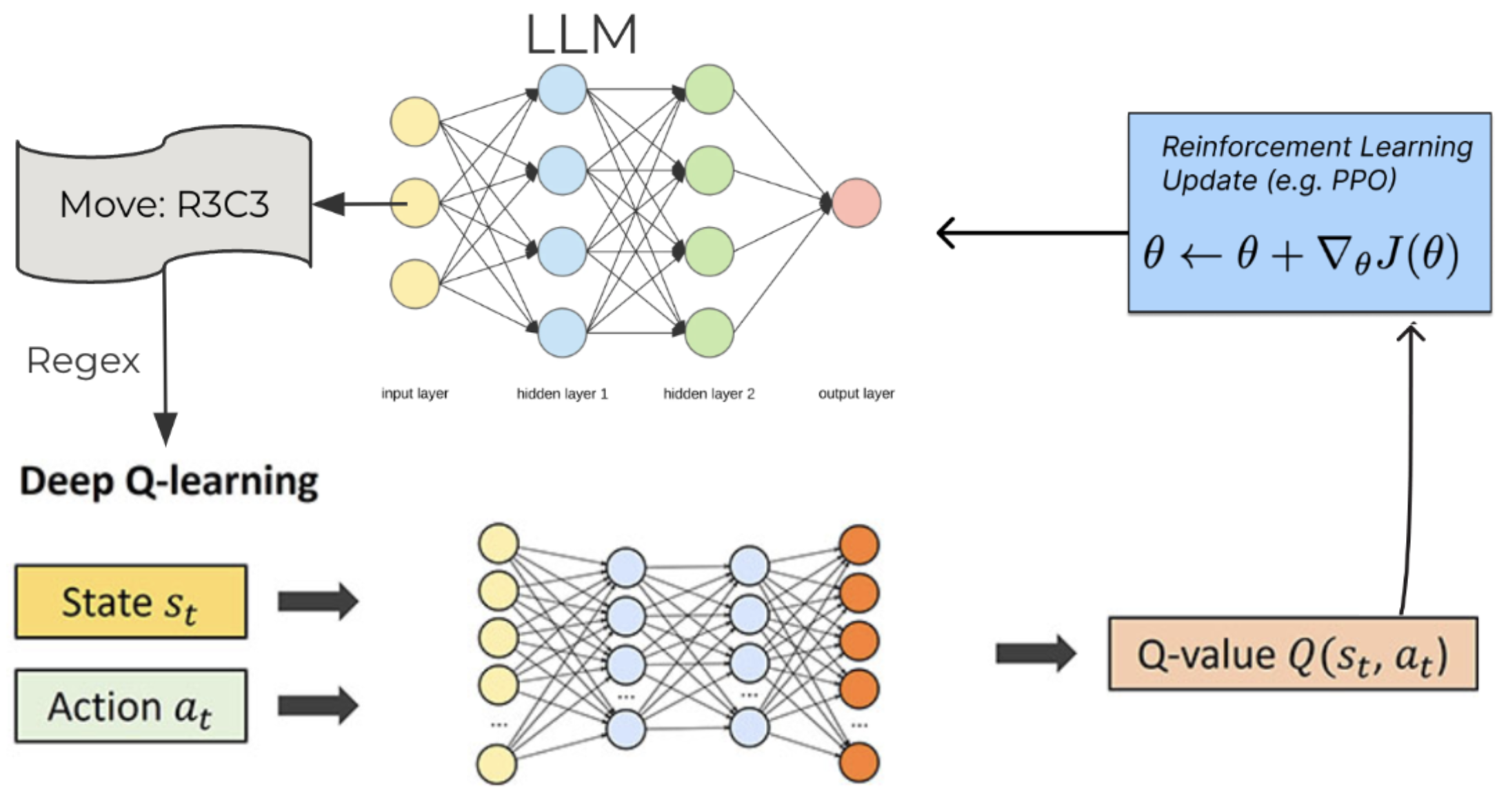 - Use reward from the DQN as feedback, train the LLM using PPO